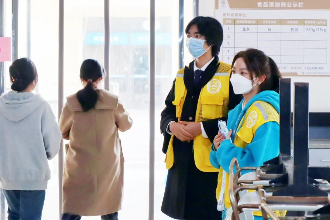 从某一天午间开始,我每天三次走街串“楼”,在准封闭期间引导过教学楼进出扫码、餐后垃圾分类、晚间提示同学及时归寝。