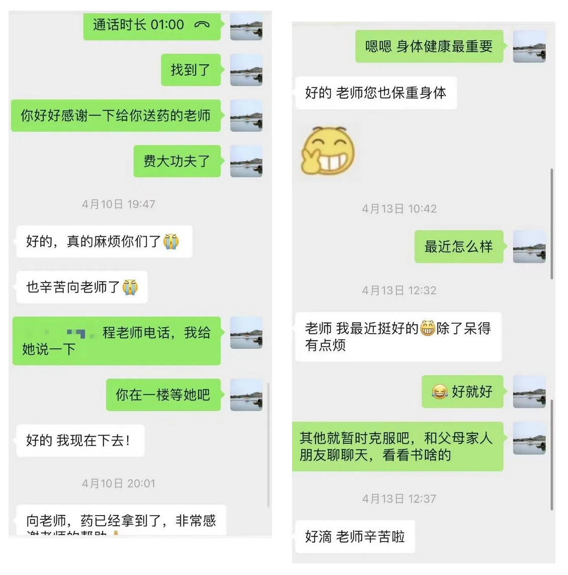 还有些同学住在校外,小区被封,他也随时关注,确保同学们身心健康……