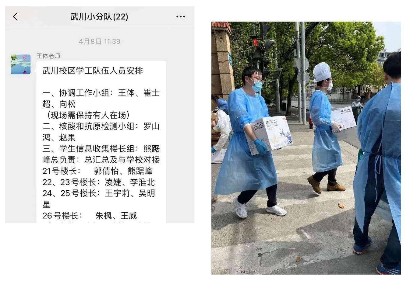 封闭管理期间,他组建了各个楼宇的志愿者团队,保障本院同学们的三餐发放和防疫安排。学生因为身体不适,他连夜联系帮忙送药;有学生到其他地区隔离,他时时关心安慰;校外学生不幸确诊,他也每天都送去问候一直到彻底康复;还有学生家人确诊,他也用语言送去温暖……