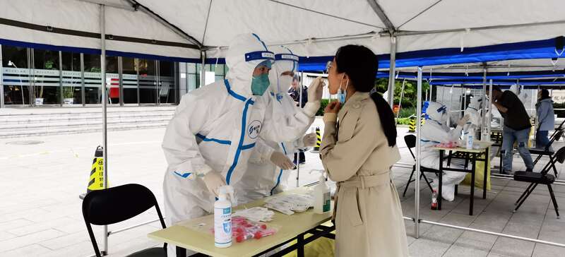 研究所里的一些老专家老教授也来做核酸检测。“他们都是我们特别尊敬的人。”董欣欣说。现场的工作人员一旦看到有老人来,就会立刻安排两人全程服务,直到老人做完检测离开。