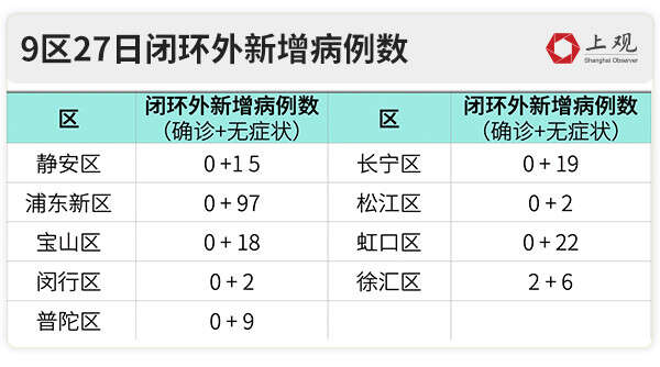 青浦区则连续3日实现社会面清零。并且闭环内病例数也在不断下降,27日新增确诊病例数相比25日下降90%,无症状感染者也减少了131人。