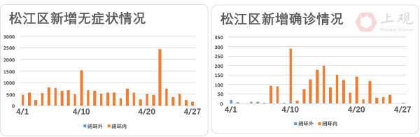近一周内,松江区单日新增无症状感染者降幅达到92.7%,27日单日新增无症状感染者179人,而4月22日为2448人。