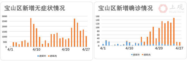 宝山区27日确诊病例数相比26日也下降82.4%,并且63.5%的确诊病例为此前无症状感染者,剩余19名确诊病例于闭环管控内。