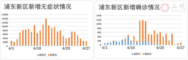 浦东新区27日新增534例确诊病例,其中112例于闭环管控内,剩余422例为此前无症状患者转为确诊病例。虽然单日新增无症状感染者数量仍有数千人,但27日已降至2459,相比此前峰值下降了82.2%。