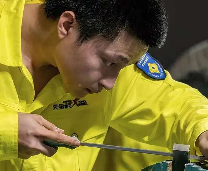 “集训4个月,光是锉刀就练废了三四十把,整整有一纸箱。”为了夯实基础、训练手感,孟凡东进行了超长时间的锉削基本功练习。每天上万次的锉削推拉,手掌心的水泡、茧子一茬接着一茬,贴上创可贴接着练。每次工件完成后,他的手背上总是扎满了细小的铁屑,把这些铁屑弄干净就要花十几分钟。