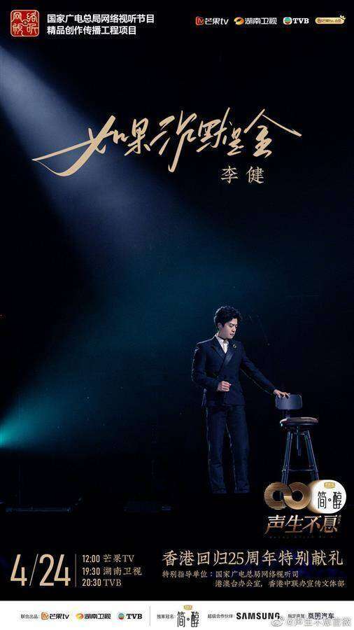 S级音综,荧屏久违了。特别献礼香港回归25周年,4月24日,在芒果TV、湖南卫视、TVB三大平台首播的音乐献礼节目《声生不息·港乐季》颇为引人注目。香港特别行政区行政长官林郑月娥,湖南省委常委、省委宣传部部长杨浩东在致辞中,凸显节目回溯港乐发展,探寻两地文化脉络的意义,诉说同根同源的中华情,用音乐架起文化交流的桥梁,增进文化自信。开播斩获收视五网第一,根据猫眼专业版显示,当日在芒果TV累计播放量破亿,4月25日14时,在芒果TV累计播放量破2亿,达到2.42亿。在音乐综艺节目与时代主题的结合上,做出令人耳目一新的探索。