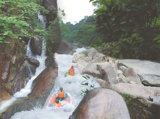 在山水间体验刺激与欢乐的漂流,一直是广东文旅特色玩水项目,备受欢迎。4月29日,国家4A景区清远古龙峡森林探险王国的古龙峡漂流率先开漂。古龙峡国际漂流赛场自被誉为“浪尖上的过山车”,作为国家体育总局指定漂流赛道,已多次承办国际自然水域漂流大赛。省内的漂流项目也陆续开漂,广州市增城区的香江健康山谷大丰门漂流也于4月30日开漂,云浮市新兴县天露山景区峡谷漂流5月1日开漂。