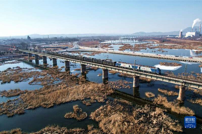 4月13日,一列满载货物的列车行驶在沈山干线上。
