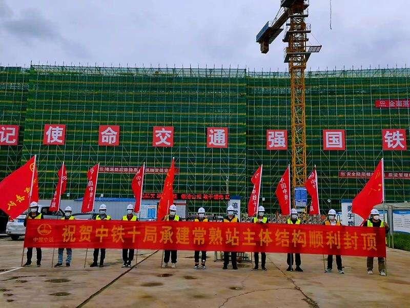 中国青年报客户端讯(孙亚帆 潘晓蕊 范词 崔桐盛 中青报•中青网记者 宋宝颖)随着最后一方混凝土浇筑完毕,5月1日,由中铁十局承建的新建南沿江铁路常熟站站房混凝土主体结构提前一个月封顶,为后续施工打下良好基础。