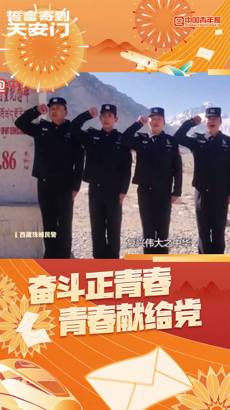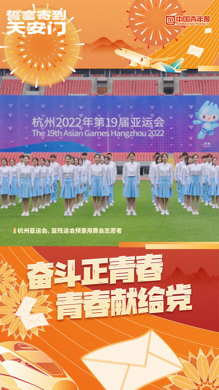 “愿以吾辈之青春,复兴伟大之中华!”在辽宁舰、在8848.86米的珠峰脚下、在大兴安岭森林腹地、在杭州奥体中心体育场……铮铮誓言发出青春的热望。自“誓言寄到天安门”征集活动启动以来,不同岗位、不同阅历的青年誓言从天南海北飞来。冬奥特种火炬研发团队、森林消防员、杭州亚运会志愿者、高校学子、创业青年……在不同的赛道上,都有年轻人奋力奔跑的身影。强国一代有担当,他们用脚步丈量祖国大地,用内心感应时代脉搏,当代青年的最好成绩正在书写!