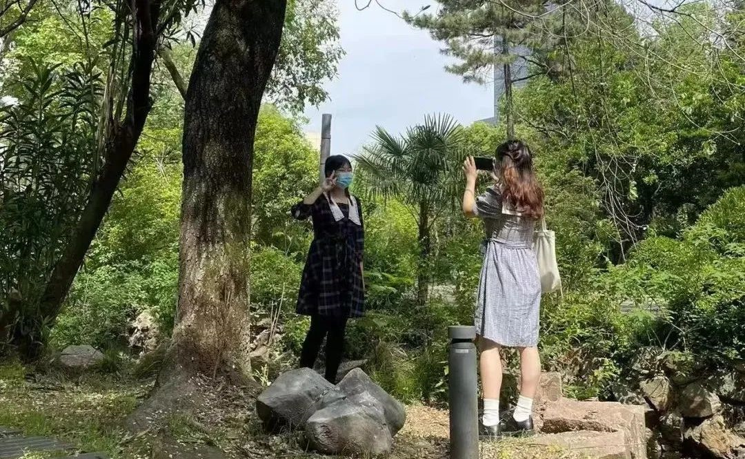 “出来在校园里走一走,真是太开心了。”同学们笑声朗朗,一个个欢呼雀跃。在他们眼中,此刻的校园既熟悉又有些许陌生。他们生怕辜负这难得的短暂时光,有的骑上了久违的单车,有的在校园美景前留影,有的弹起了尤克里里,还有的兴奋地放飞风筝……