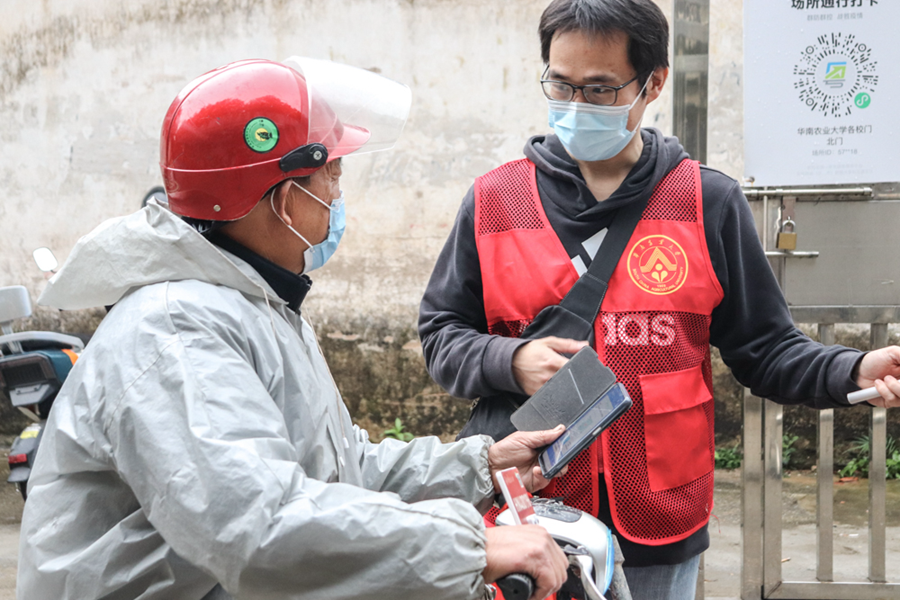资源环境学院54位教师主动加入突击队,班子成员、支部书记带头表率,组成了一支老中青传帮带的的志愿者队伍。学院党委书记周艳华告诉记者:“突击队员利用周末休息时间和上班前、下班后,无论晴天雨天都坚持打卡,为打赢疫情阻击战站岗值守,充分展现了华农人的主人翁精神。”