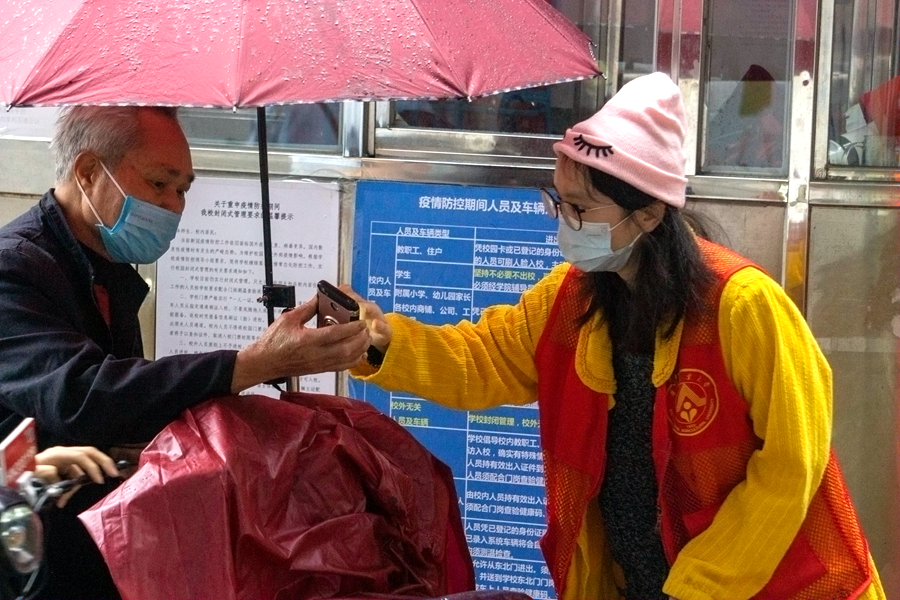 5分队的赵杏娟是卢永根院士生前秘书,虽然住在校外,但节假日也能准时赶回来站岗执勤。她也经历了3月27日的大暴雨。当她冒着大雨、全身湿透出现在门岗时,保安都惊诧了:“这么大雨,以为你不会来了。”王敏(宣传部)作为徐雪宾教授的文字秘书,除了正常执勤,每次核酸检测都必定坚守现场,坚持到深夜。当她俩全身湿透、带着疲惫赶着夜路回家时,内心都是亮堂和热乎的,因为卢永根、徐雪宾两位老党员身体力行的“要尽到一名共产党员的责任”激励她们用行动来弘扬传承。