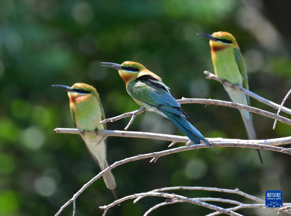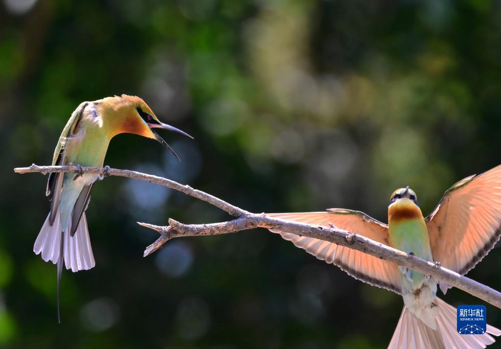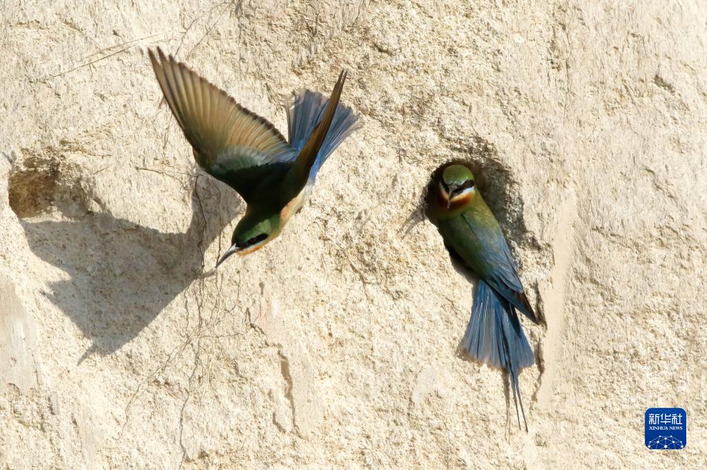 近日,一批栗喉蜂虎飞抵福建省厦门五缘湾栗喉蜂虎自然保护区,开始筑巢繁殖和育雏。栗喉蜂虎是国家二级保护动物,被爱鸟观鸟者称为“最美候鸟”。