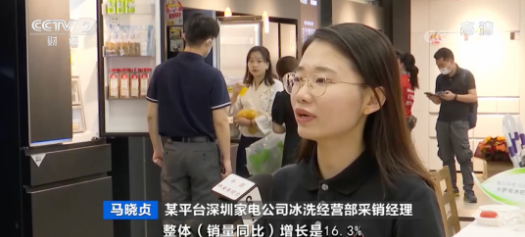 某平台深圳家电公司冰洗经营部采销经理 马晓贞:冰柜方面,一季度整体销量同比增长16.3%,线上同比增长54.3%,线下同比增长4.5%。