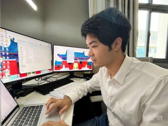 毛竞航在工作中(央广网记者 蔡文娟 摄)