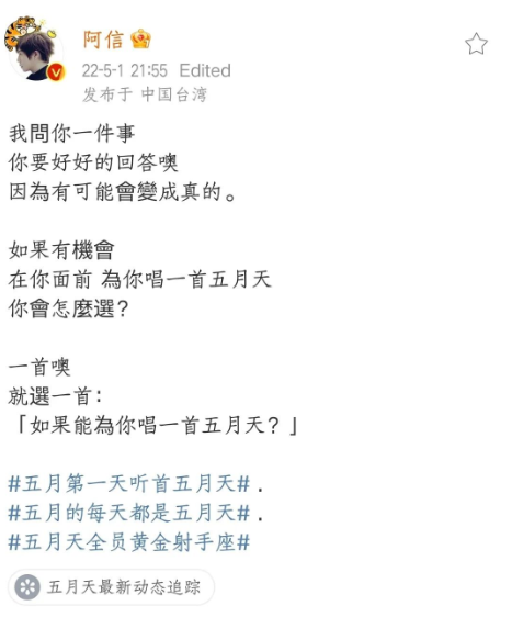 这种可能,出现在May,出现在Mayday的微博里,一切都变得很有可能了起来。