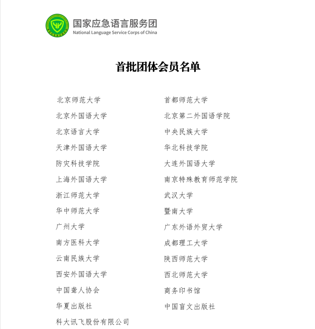 4月28日,由29家高校、企业、协会组织等联合发起的国家应急语言服务团在京成立。教育部党组成员、副部长,国家语委主任田学军出席会议并讲话。会议通过线上和线下相结合的方式进行,应急管理部、国家民委、共青团中央等部门代表参会并致辞,部分团体会员代表发言。
