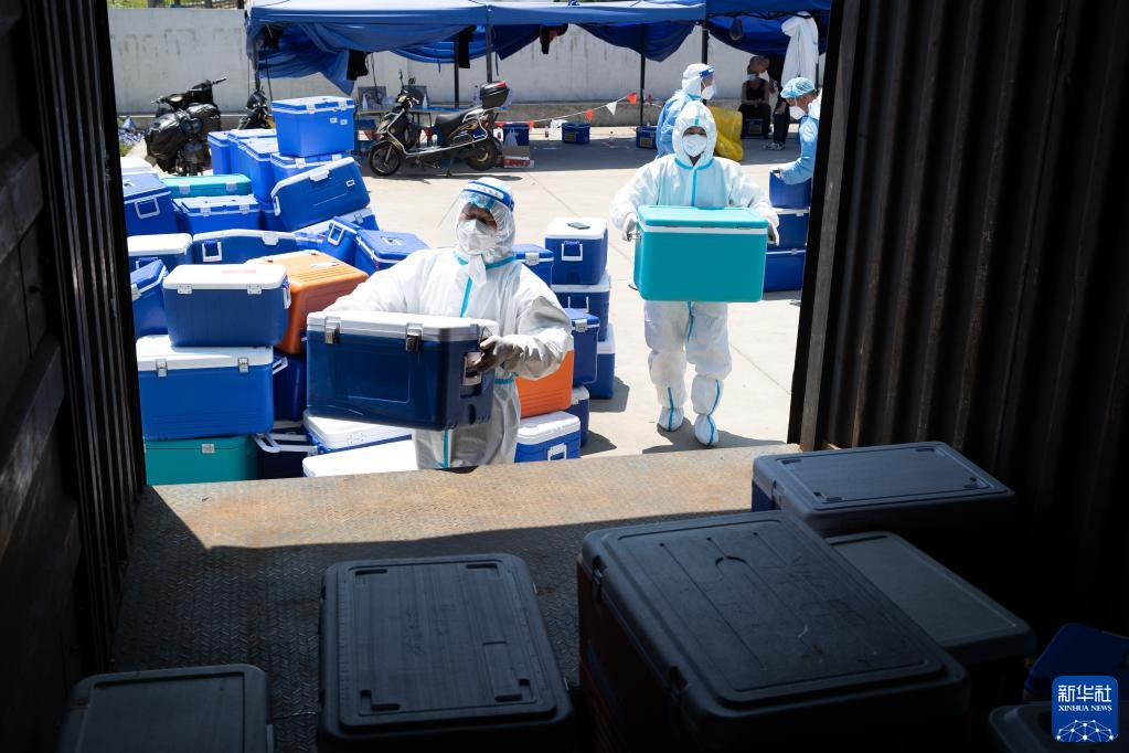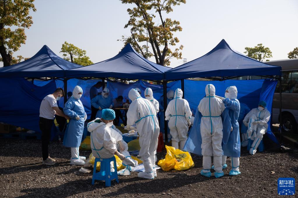上海浦东北蔡镇设立医护集散点,上海东方医院南院以及各地援沪的医疗队核酸采集力量,每天早上在这里集结,领取任务后分赴农村、居民区采集核酸样本,采集完毕后再派人取回,统一送往实验室进行检测。
