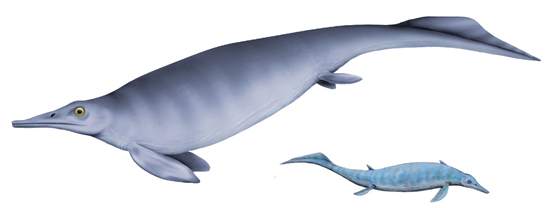百色龙(上)和巢湖鱼龙(下)复原图。