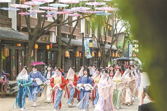 如果说有什么能一秒触动年轻人敏感的出游神经,“国风体验”无疑是关键标签。今年“五一”,沉浸式国风主题体验景区备受追捧。曾为唐代著名的曲江皇家园林所在地的西安曲江,推出沉浸式唐风市井生活“长安十二时辰”体验游,游客从走进大门开始,就能全身心沉浸于“梦回唐朝”的幻境中,这让其迅速登上微博热搜。
