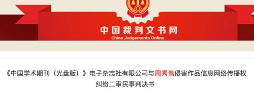 判决书显示,法院认为,学术期刊公司通过其经营的“CNKI手机知网”iOS手机软件向不特定公众提供涉案作品的下载阅读服务,侵害了周秀鸾对涉案作品的信息网络传播权,应当承担侵权赔偿责任。