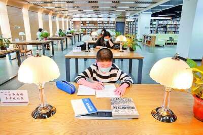 江苏省南京市六合区图书馆成为市民读书学习的理想场所。史俊摄/光明图片