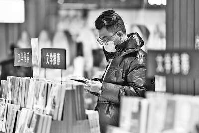 文学精品必然是思想精深、艺术精湛,在市场上广受欢迎,而且具有长远性。图为读者在书店里挑选文学书籍。新华社记者 张浩然摄
