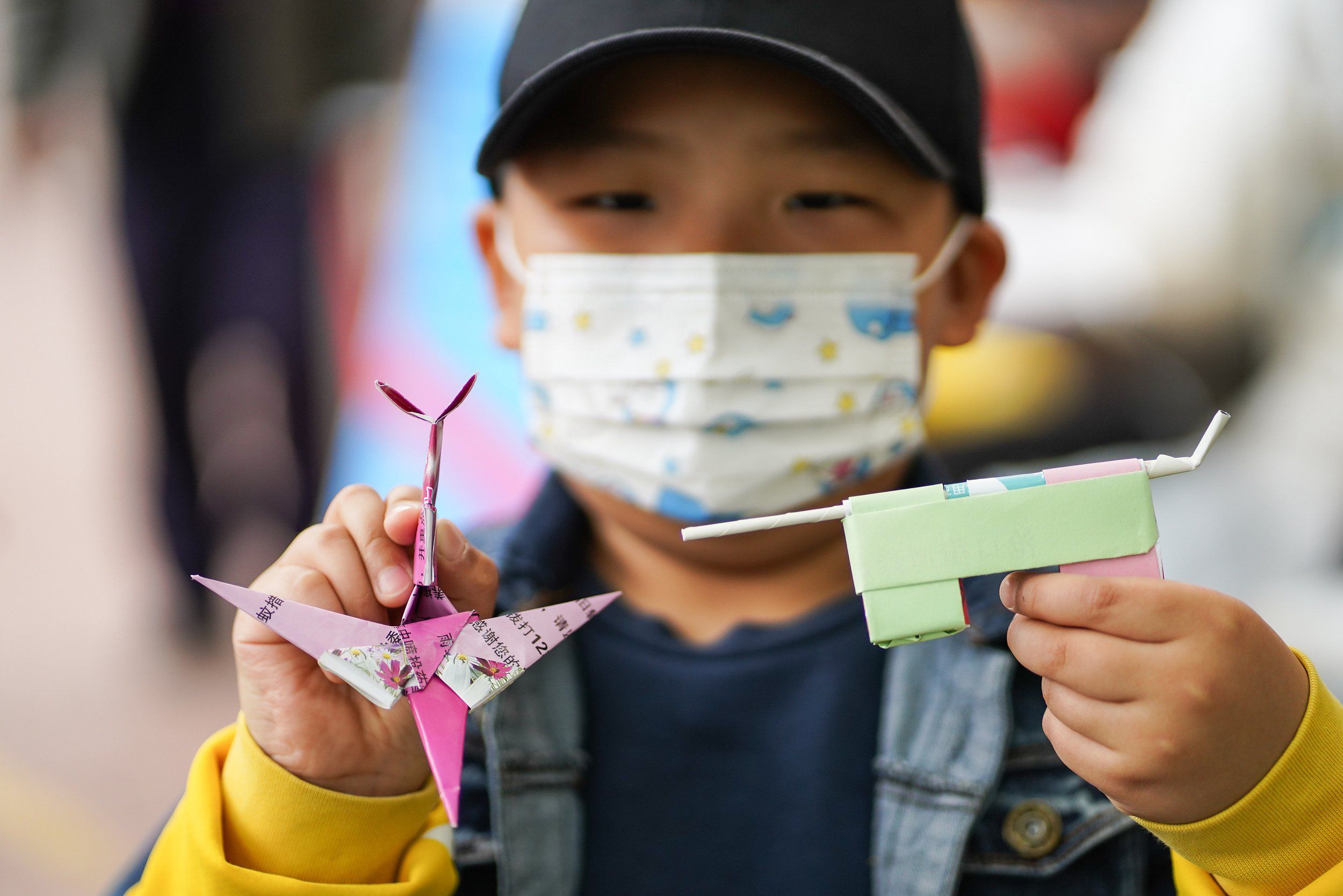 2022年5月7日,青岛市,“折纸爷爷”孙琦利用一个多月的时间制作了上千个折纸玩具,其中有用宣传单页折成的纸飞机、纸手枪,用卡纸折成的五角星、小斧头,还有用牙膏盒、香皂盒做成的小汽车、小房子,免费赠送给前来做核酸检测的小朋友,帮助他们化解紧张情绪,积极配合检测。