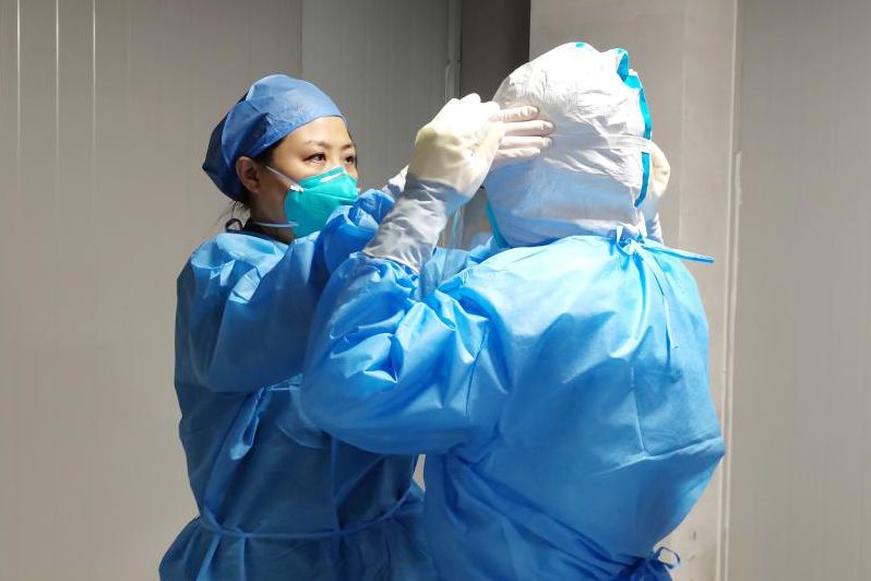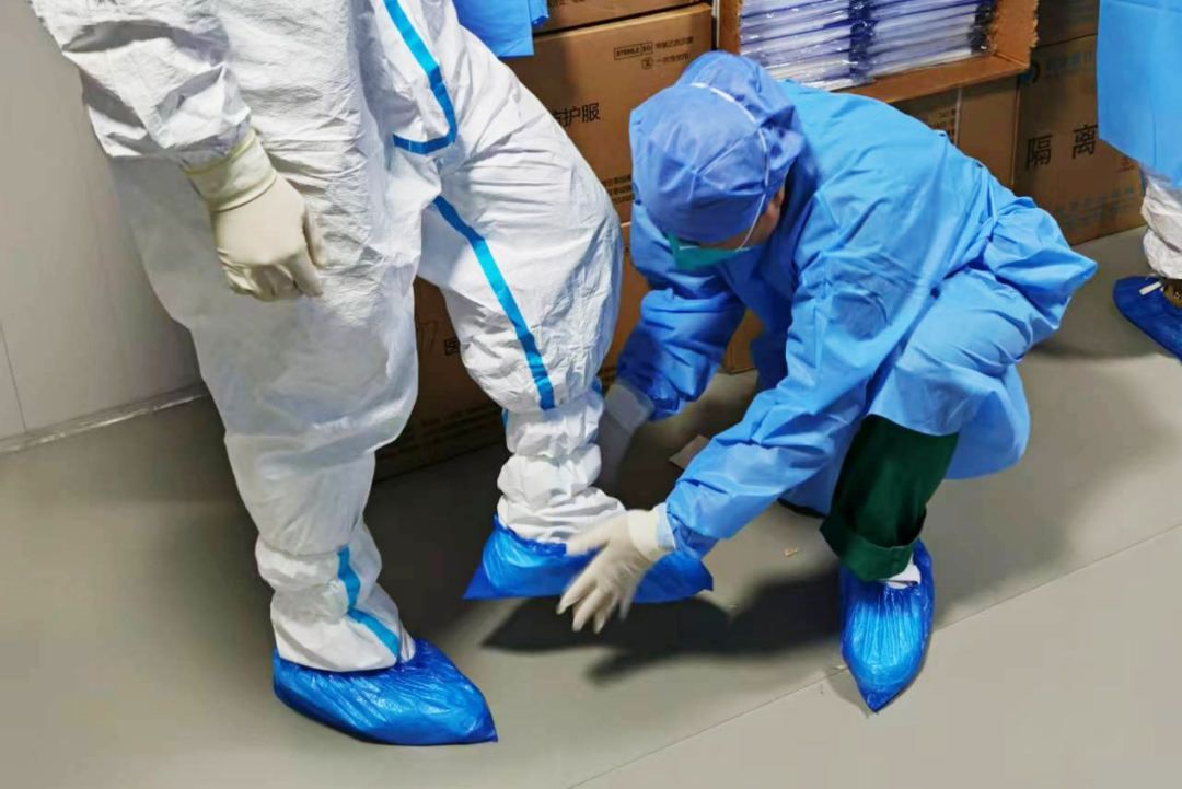 援沪医疗队“感控人”协助进舱人员做好个人防护
