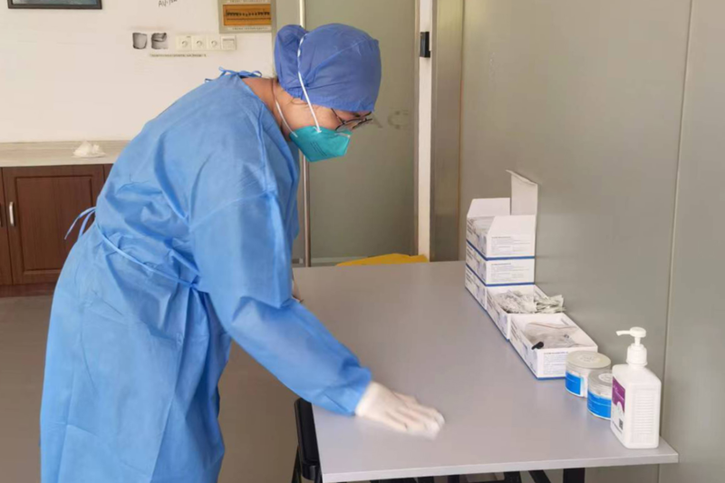 援沪医疗队“感控人”崔雯护士对工作场所进行消杀