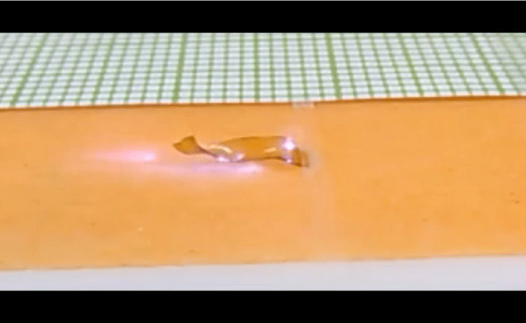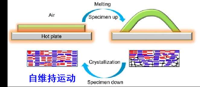 75°加热板上,一小片“塑料膜”仿佛有了生命,开始蠕动前行;激光直射下,一条“仿生虫”左右扭动,像是在躲避外界刺激......