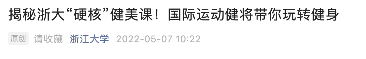 据浙大官微介绍,浙江大学的健美课程开设于1995年,是全国普通高校的先河之举。