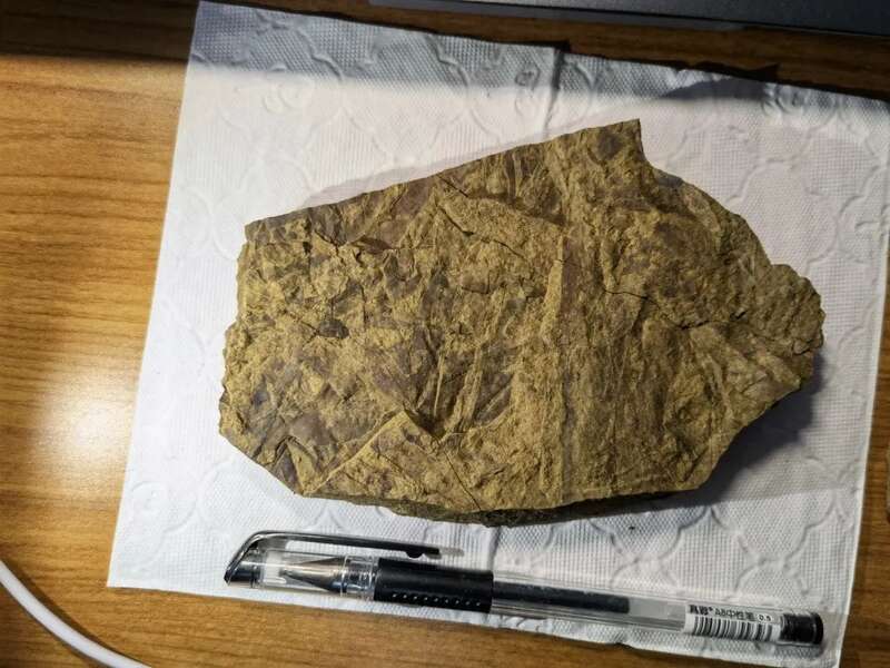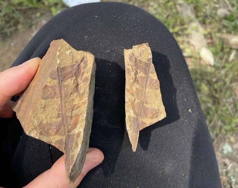 “我也捡到了一块叶脉清晰的植物化石。”