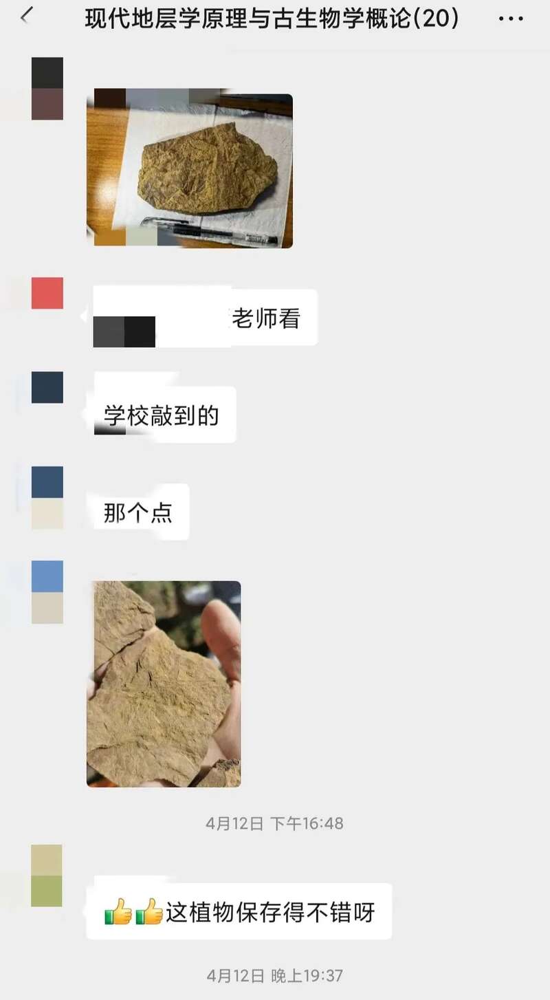 4月中旬,《现代古生物学原理与古生物学概论》课程微信群里同学的几则信息和图片,“敲开”了中国科学院大学(以下简称“国科大”)校园化石发掘之旅。