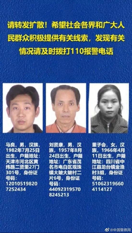 据公安部刑侦局5月12日通报,马么日外(女、64岁、四川省金阳县人)、刘上英(女、62岁、广西壮族自治区博白县人)、黎经发(男、56岁、广东省阳春市人)3人分别于5月7日、5月11日相继落网,公安机关正在对抓获人员涉嫌拐卖犯罪的有关情况进行审查。