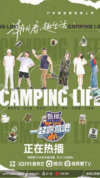 而主打露营的综艺也如雨后春笋般出现。去年播出的《追星星的人》和《春日酱》,一个定位于“星空下自驾露营青春慢综艺”,一个“用露营的方式解锁短途新玩法,打卡全国各地的春日风光”,露营成为节目主要展现对象和呈现载体。《一起露营吧》也以露营为主题,让6名嘉宾组成“露营家族”,打卡5个潮流营地,在选购物品、搭建帐篷、户外烹饪的同时科普露营相关知识。本周刚刚开始录制的《花儿与少年露营季》带着老牌IP阔别5年回归的光环,以及流量嘉宾的加持,尚未播出便已备受关注。