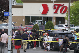 美国纽约州布法罗市一家超市14日发生枪击事件,事发现场被封锁。(图源:美媒)