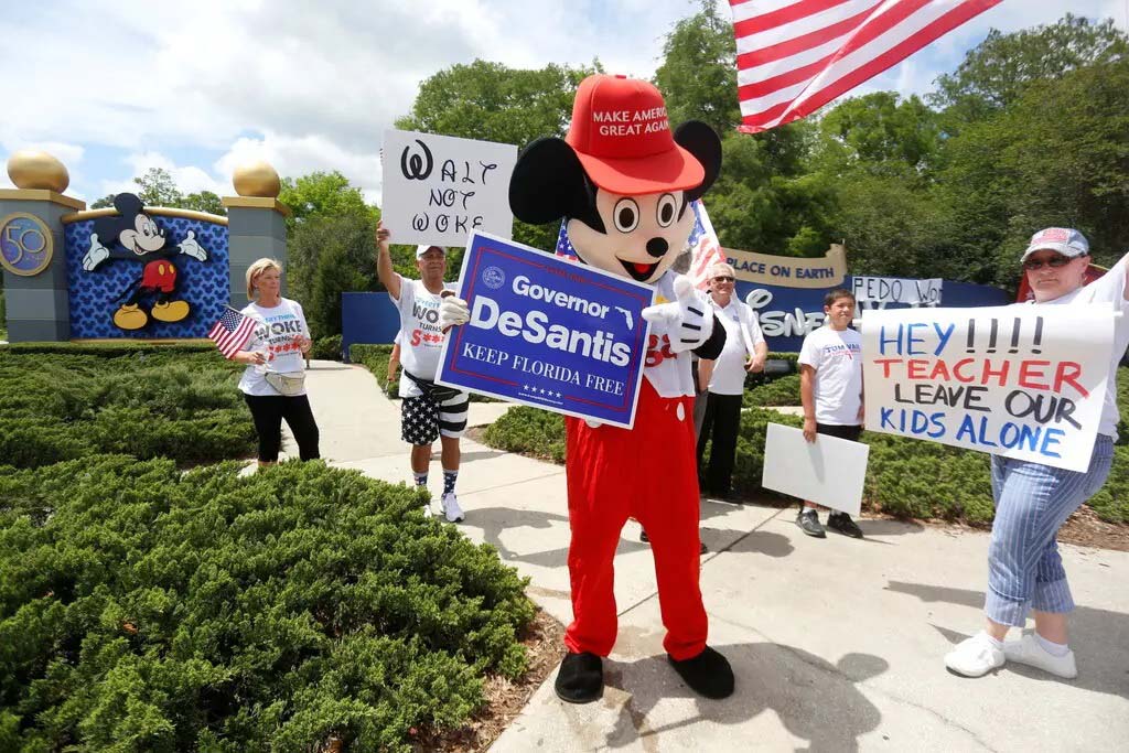 佛罗里达州“不要说同性恋”法案的支持者在奥兰多迪士尼世界度假区外抗议。 图源:路透社