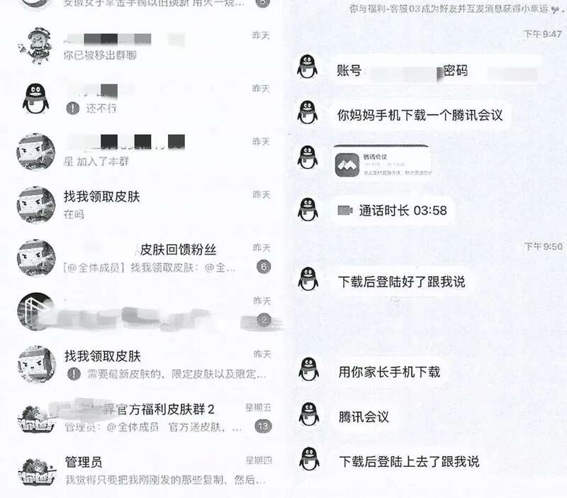 各种主动来搭讪,说有免费的皮肤可以领取,随后让你先扫码、再解冻的,统统都是骗局!别拿父母的血汗钱打水漂哇!