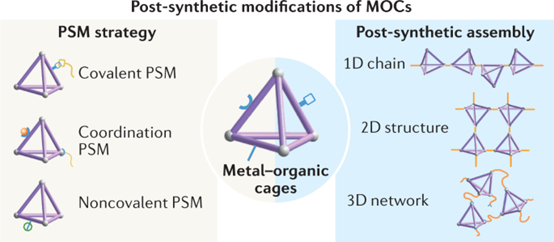 近年来,后合成修饰(Postsynthetic modification,PSM)作为一种新兴的方法,大大拓宽了MOCs材料的功能化应用前景,成为了当前超分子化学领域的研究热点。