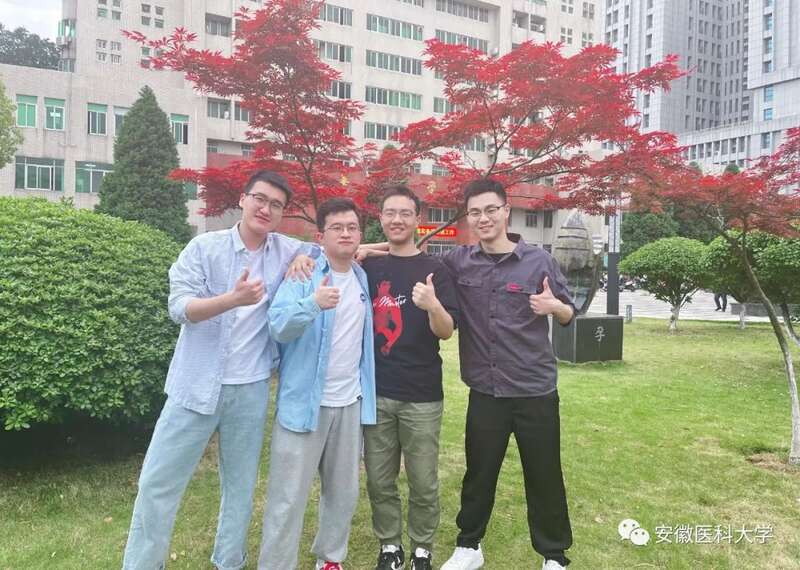 在安徽医科大学尚美楼4号楼,有这样一个充满阳光和热情的寝室,四位同学来自五湖四海,性格各不相同,但他们却拥有着相同的身份——光荣的共产党员。 在他们身上,年轻党员的优秀品质得到了很好地诠释。他们彼此互相包容和关爱,一同团结向前。 金风送爽的9月,这四位来自 第一临床医学院2017级临床医学专业 的男生共同收到了985高校免试研究生的喜讯,实现各自升学深造梦,在安徽医科大学这片生机盎然的土地上书写着华丽的青春乐章。他们就是来自310寝室的 张竞成、束金辉、巫建康和刘泉。