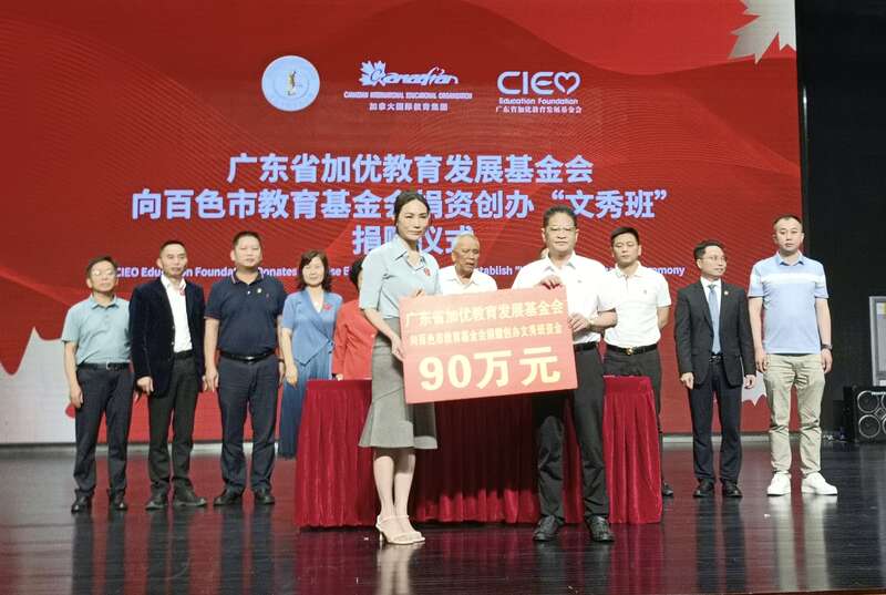 中国青年报客户端广州5月17日电(中青报·中青网记者 林洁)今天,在全国扶贫状元、广州市政协原主席、广东省老区促进会会长陈开枝的见证下,广东省加优教育发展基金会向广西壮族自治区百色市教育基金会捐资90万元,在百色市创办2个高中“文秀班”,受助学生100名,每个班45万元,每人每年资助3000元。