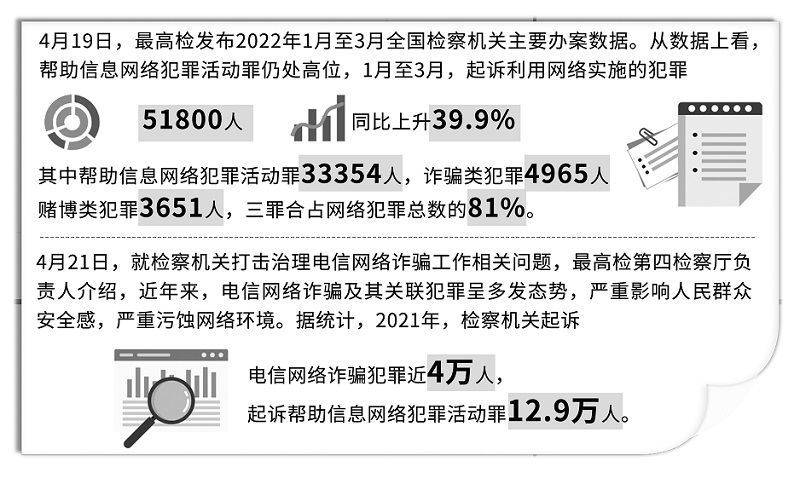 据悉,最高检今年将继续深化措施,加强对电信网络诈骗犯罪全链条的治理,依法从严惩治为诈骗犯罪“输血供粮”的各类网络黑产犯罪,深入开展“断卡”行动。