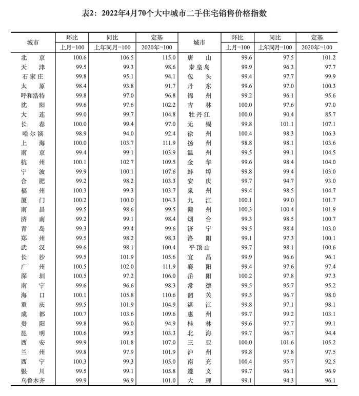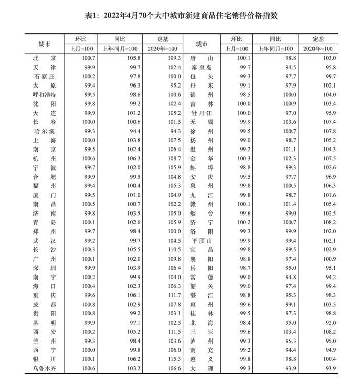 中新财经5月18日电 5月18日,国家统计局公布的数据显示,2022年4月份,70个大中城市中,新建商品住宅和二手住宅销售价格环比下降城市分别有47个和50个,比上月分别增加9个和5个。