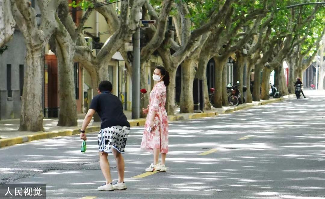 ▲ 2022年5月18日,上海16个区实现社会面清零,防范区居民走上街头,感受初夏的阳光