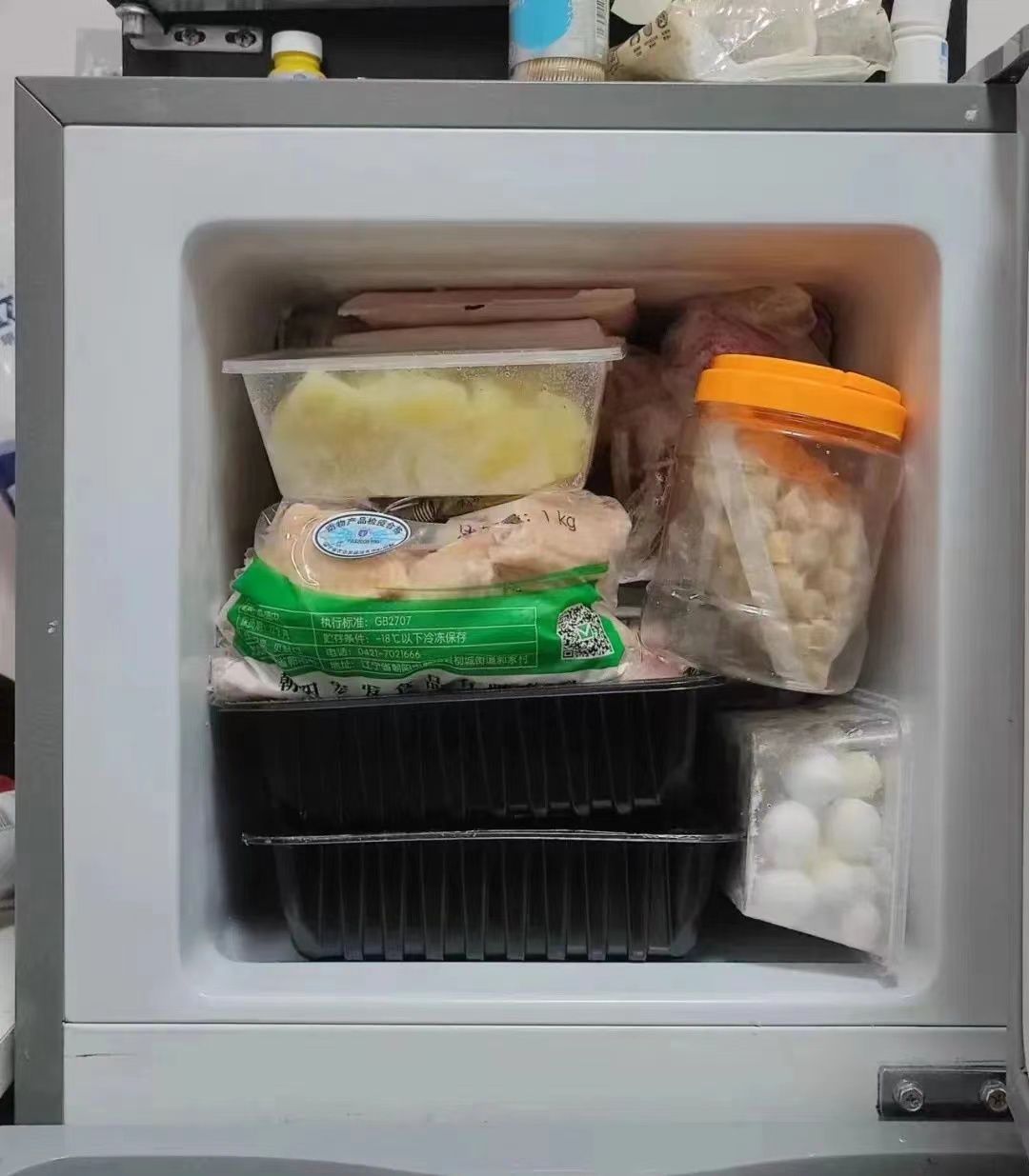 ▲ 阿凌在疫情期间团购的食品塞满了冰箱