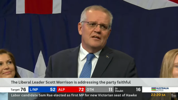 莫里森21日晚间在自由党总部发表讲话 视频截图