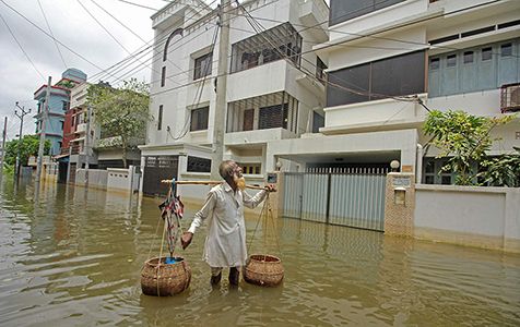 近日,暴雨在孟加拉国和印度部分地区造成大范围洪水,导致数百万人被困,至少已有57人遇难。