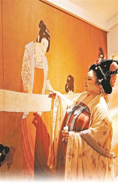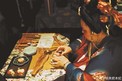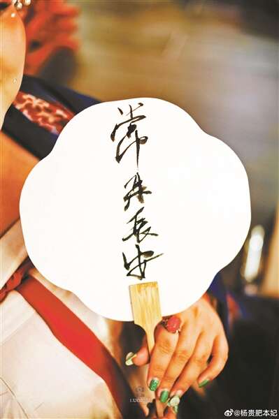 在扮演杨贵妃表演时,王宇也会跟游客们进行互动,她也非常享受这一过程。“我会时常更换与粉丝们互动的场景和方式,比如说刚开始我只是跟粉丝们合影,而最近我会用金色的毛笔在粉丝的手背上写一些‘如意’‘平安’‘长寿’等吉祥的字眼,希望把这些美好的祝福送给每一位来到长安十二时辰街区的游客。”